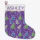 Stylized Christmas trees pattern purple and name Large Christmas Stocking
