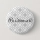 A stylized flower is the back drop for this bridesmaid button. A background colour may also be added.
