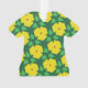 Stylized yellow flowers with green leaves against a darker green background is a fun design for flower lovers, gardeners, green house workers and horticulturists.