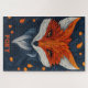 Stylized Fox Illustration with Floral Background Jigsaw Puzzle