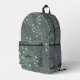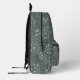 Stylized Green Leaves on Grey Name Monogram Printed Backpack