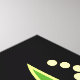 Stylized pink flamingo art on black background with green foliage