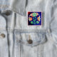 STYLIZED PINK FLOWER ,BLUE GREEN FLORAL 2 INCH SQUARE BUTTON