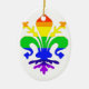 Stylized Rainbow Fleur de Lis Ceramic Ornament
