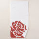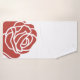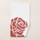 The stylized red rose on white bath towel set is part of the Red Roses Bathroom collection. For customization assistance or to discuss a custom design, contact https://t.me/KBMD3signs_chat.