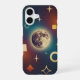 A retro illustration featuring a stylized moon and surrounding geometric star elements, capturing a serene and soft cosmic aesthetic.