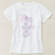 Graphic purple and pink floral decorative bird cage ladies t-shirt. Uniquely illustrated designed by Sarah Trett.