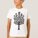 A hand drawn original tree motif in a pen an ink style with clumps of leaves dispersed along the branches.