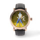 STYLIZED YELLOW BLUE GOLFER,GOLF PLAYER MONOGRAM WATCH