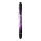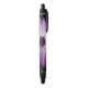 Ce stylo personnalisé impressionnant présente une photo magnifiquement détaillée d'une fleur de marguerite africaine. La photo a été numériquement modifiée, ce qui donne une jolie fleur de couleur violet avec différentes nuances de violet sur les pétales et un centre violet foncé.