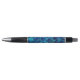 Photographie sous-marine d'un banc de poissons de cirque bleu tropical nageant près du fond marin.