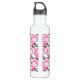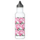 Bouteille d'eau avec illustration de stylo à pivoine rose.