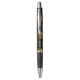 Stylo personnalisé avec motif d'ananas en or sur fond noir. Conçu pour correspondre à notre collection Ananas en or.