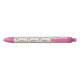 Un stylo avec un beau motif à thème français. Jolies fleurs et une tour Eiffel et papillons. Les couleurs comprennent le rose, le bleu, la pêche et la crème.
