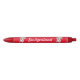 Un stylo rouge d'amusement (équilibre et encre) avec deux petites vaches blanches et noires mignonnes et le mot "Suisse" écrite d'une manière ordonnée dans les lettres blanches.