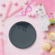 Refined and moody, this 7" round customizable paper plate blends two deep charcoal finishes in a minimalist drip design. With a smooth matte base and textured noise effect dripping subtly from the top, this plate delivers quiet drama — ideal for high-end events that prefer sophistication over spectacle.