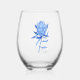 Subtle Elegant Name on Cobalt Protea Flower Stemless Wine Glass