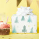 White wrapping paper, adorned with a repeating pattern of minimalist green-blue trees and delicate stars. This elegant and understated design captures the essence of the season, making it perfect for both traditional and contemporary celebrations.