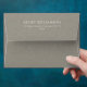 This envelope features a modern, minimalist design with a classic white script font on a faux grey linen texture. Elegant and understated, it’s perfect for both personal and professional use. Customize with your name, address to add a touch of sophistication to your correspondence.