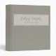 This 3-ring binder showcases a modern, minimalist design with classic grey script on a light grey banner and a subtle faux linen texture. Elegant yet understated, it’s ideal for both personal and professional use. Customize with your name and add additional text for a personalized touch.