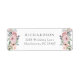 These lovely floral wedding return address labels feature watercolor bouquets full of dusty coloured roses and flowers in shades of peach, pink, blue, and greenery, with elegant modern text on a clean, white background.