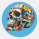 Embrace urban culture with this vibrant sticker showcasing a skull with subway art patterns. Great for decorating your phone case, water bottle, or notebook.