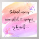 “Behind every successful woman is herself.” So who needs Prince Charming? Make your own “happily ever after” and embrace “girl power” as you gaze at this stylish, colorful, inspirational feminist poster with sweet black handwritten script typography overlaying a yellow, peach, pink and purple ombre watercolor splash.