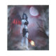 This design features A female demon on a eerie night sky background. red themed and foggy surroundings.
