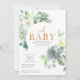 Oh Baby! This stunning baby shower invitation features gorgeous watercolour succulents, greenery and faux gold display text. A wonderful way to invite guests to your baby shower.