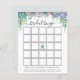Bridal shower bingo card featuring a cascade of purple, green and dusty blue succulents, eucalyptus and greenery. A fun way to interact with shower guests while the bride-to-be opens her gifts.
