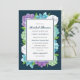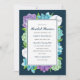 Elegant Bridal Shower invitations, featuring succulent watercolor flowers in purple, blue, aqua, green, and white. The background colour (shown in navy blue) can be customized, if desired.