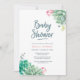 Invite your friends and family to celebrate your baby shower with this simple yet elegant succulent florals Girl Baby Shower Invitation with gorgeous watercolor florals and pink handwritten text.