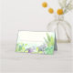 Gorgeous watercolor succulents folded seating card for weddings or any fine event. Blended shades of green, teal and purple succulents with whimsical text in violet.