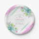 Loose watercolor succulents foliage wedding paper plates. Pretty disposable plate design in blue greens, green, pink and purple hues. Personalize with your own wedding details. Other matching items available in the succulent art collection. Original watercolor art by Sarah Trett for www.mylittleedenweddings.com on zazzle. © Original watercolor art and design by Sarah Trett www.sarahtrett.com for www.mylittleedenweddings.com