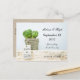 This elegant wedding save the date postcard features a picture of a plant pot with a succulent. Attached is a rustic label that holds the words "Save the Date". The rope and natural materials add a chic look with a vintage touch. The information is written in elegant lettering. This design is ideal for a wedding with a botanical, rustic, or outdoors theme. It’s perfect for nature lovers with a sophisticated taste.