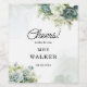 Floral delicate watercolor compositions of succulents, roses and green branches. Elegant bridal Shower Wine Label.