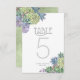 Unique fonts, colourful watercolor succulents and glittery backgrounds in a soft spring green are the highlights of these mix-and-match wedding products. This beautiful table number card has foliage corner borders on a white background with a provided template to edit numbers, bride and groom's names and wedding date. A shiny, textured pattern, in light and dark tones of spring green, adds a contrasting background on the reverse. Search ID515 to see all the matching products in this set.