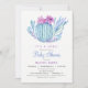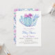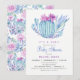 Succulents girl baby shower invitation. Invite features violet purple and blue succulent cactus and floral pattern.