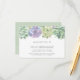 Botanical wedding reception enclosure card with a top border consisting of green and purple watercolor succulents and your details in a soft grey font. The backside has a green watercolor wash. The succulents add a great natural element to the design. If your reception will be held in a separate location than your ceremony, these enclosure cards are a great way to provide information about your reception, such as the address, time and attire. These enclosure cards are perfect for a desert wedding in the spring or summer.