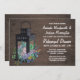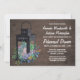 Succulents + Lantern Rehearsal Dinner Invitations - présente un ancien arrière - plan en bois de grange avec une lanterne noire remplie de succulents d'aquarelle et de fleurs sauvages. Voir les produits de conception correspondants trouvés dans la collection sur cette page.