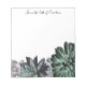 Jot down notes and reminders with a personalized Succulents Notepad. Notepad design features a collection of a variety of succulent plants in different colours. Additional matching stationery items available with this design as well. If you need assistance with personalization, please contact me directly.