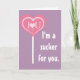 "I'm a sucker for you." Valentine's Day greeting card with heart sucker.