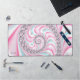 Ce magnifique tapis de bureau présente un design fractal en spirale abstrait en bleu pastel, rose et blanc. Personnalisez-le avec le nom ou le texte court dans le coin inférieur gauche. Idéal pour les filles salle de jeu ou bureau.