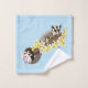 Un joli planeur de sucre assis sur une branche d'arbre avec de petites fleurs blanches, jaunes et roses tout autour. Le planeur à sucre et les fleurs sont tous dessinés dans un style tatouage dans un décor bleu