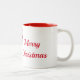 Cette tasse de café est présentée dans le style rouge à deux tons avec une impression de sucre de canne de fête festive avec un message de Noël joyeux. Customisez cet objet ou achetez tel quel. Image stock