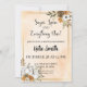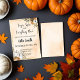 Sugar, spice, and everything nice that you want on your Fall shower invite. This Autumn design features a watercolor peach background with a thin gold frame accented by a Fall bouquet of Autumn flowers, ghost pumpkins, and greenery. The text brings a cute, fun, flair while keeping everything looking modern and sophisticated making it perfect for every Fall shower!