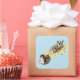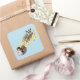 A cute sugar glider sitting on a tree branch with small yellow, pink and white flowers all around. The sugar glider and flowers are all drawn in a tattoo style in a backdrop of blue