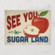 A charming Sugar Land Texas vintage travel postcard featuring a lovely red apple, along with fun retro style text that says, "See you in Sugar Land"