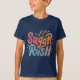 This t-shirt design for "Sugar Rush" celebrates the feeling of pure sweetness and energetic joy, without relying on images of people. Here's a breakdown: