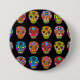 Multicolor sugar skulls pin button. Background colour can be customized.